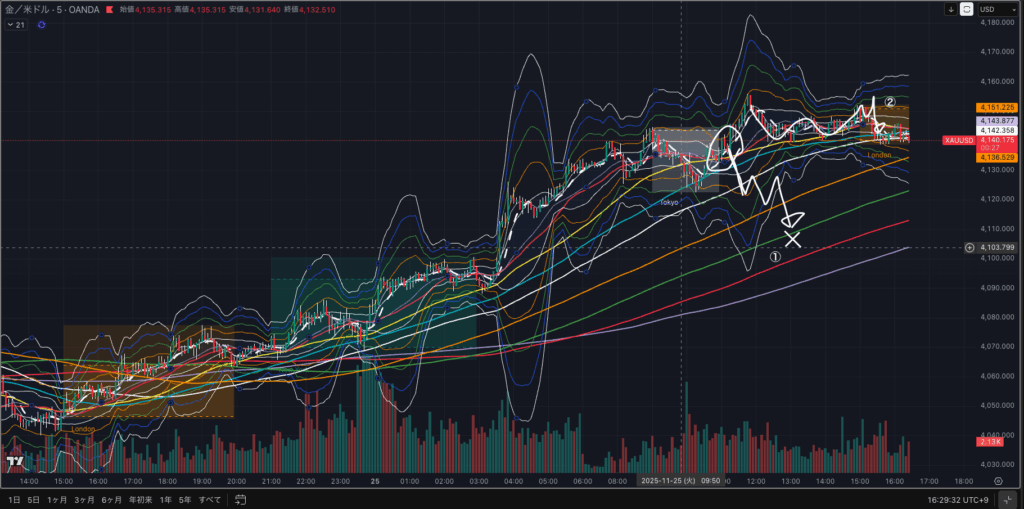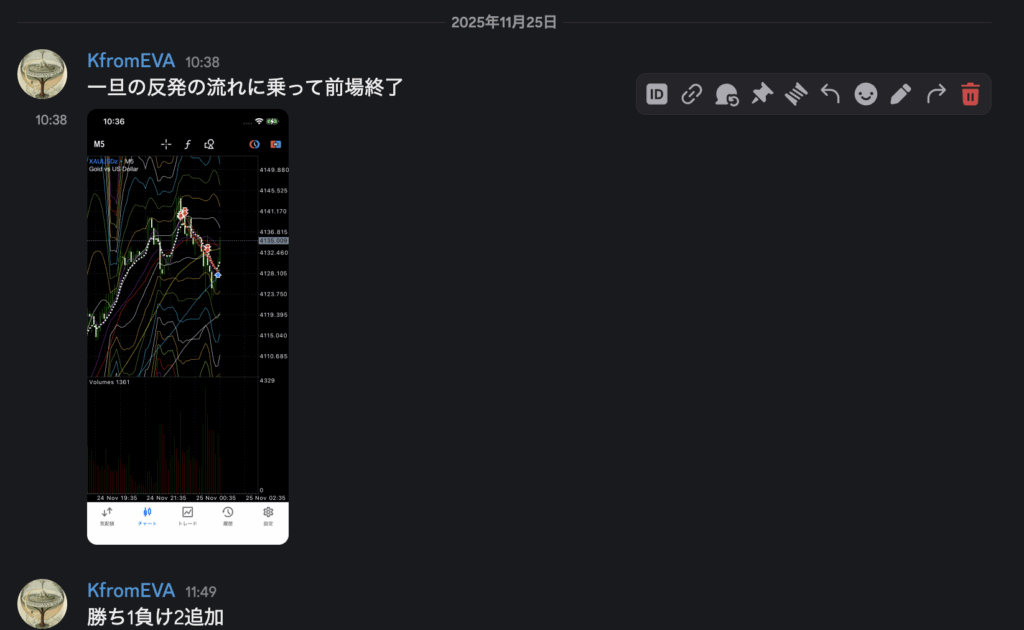 2025年11月25日午前のXAUUSDにおけるトレードを隊に共有した所、質問をもらった。